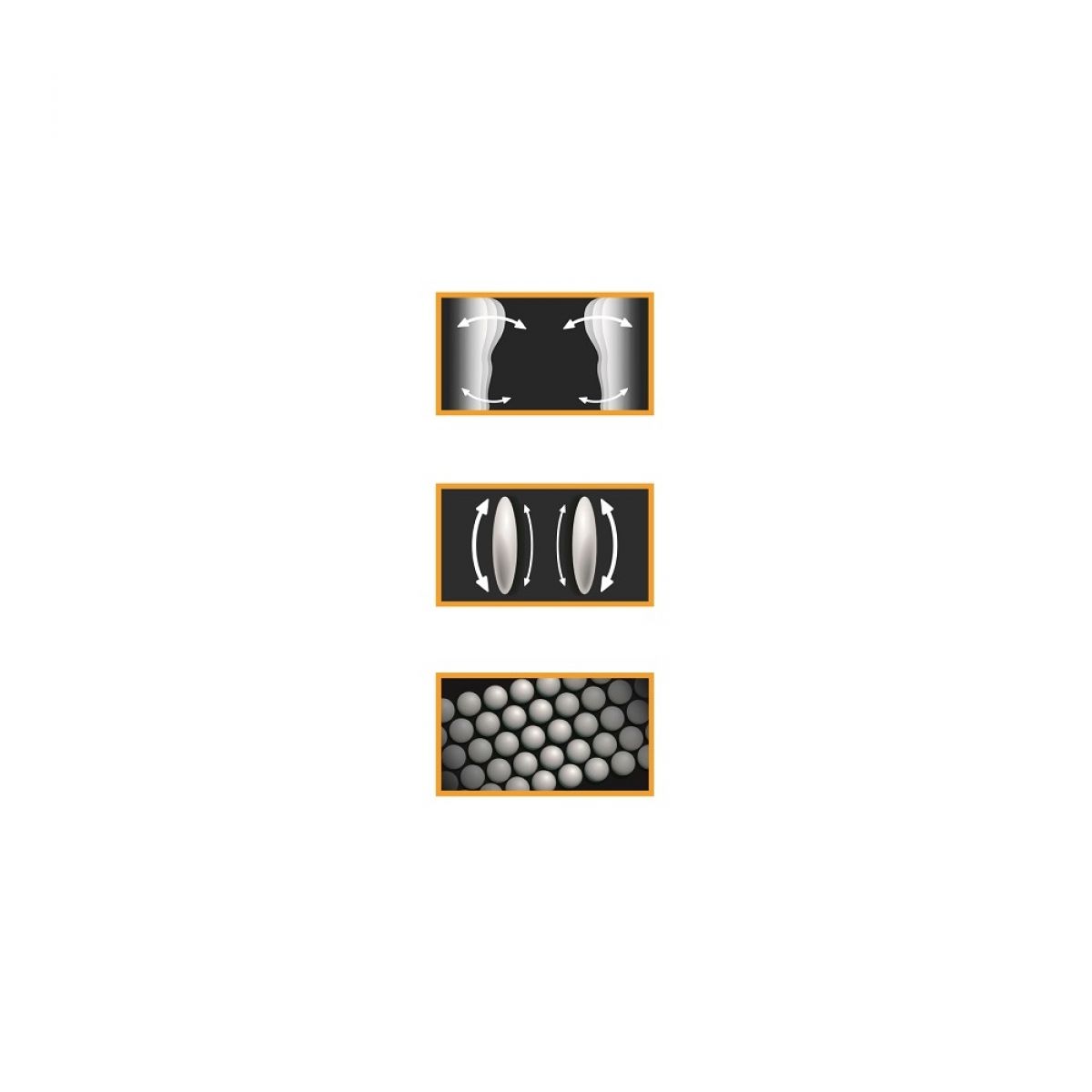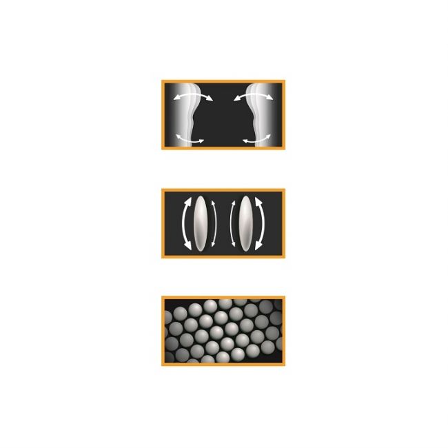 Masszírozó golyócskák: A görgők mozgása talpunkat ide-oda ringatja a készülékben, így az folyamatosan érintkezik a golyókkal, melyek átnyomkodják, átmasszírozzák talpunkat, érintve az akupunktúrás pontokat, így segítenek harmonizálni a szervezet működését.