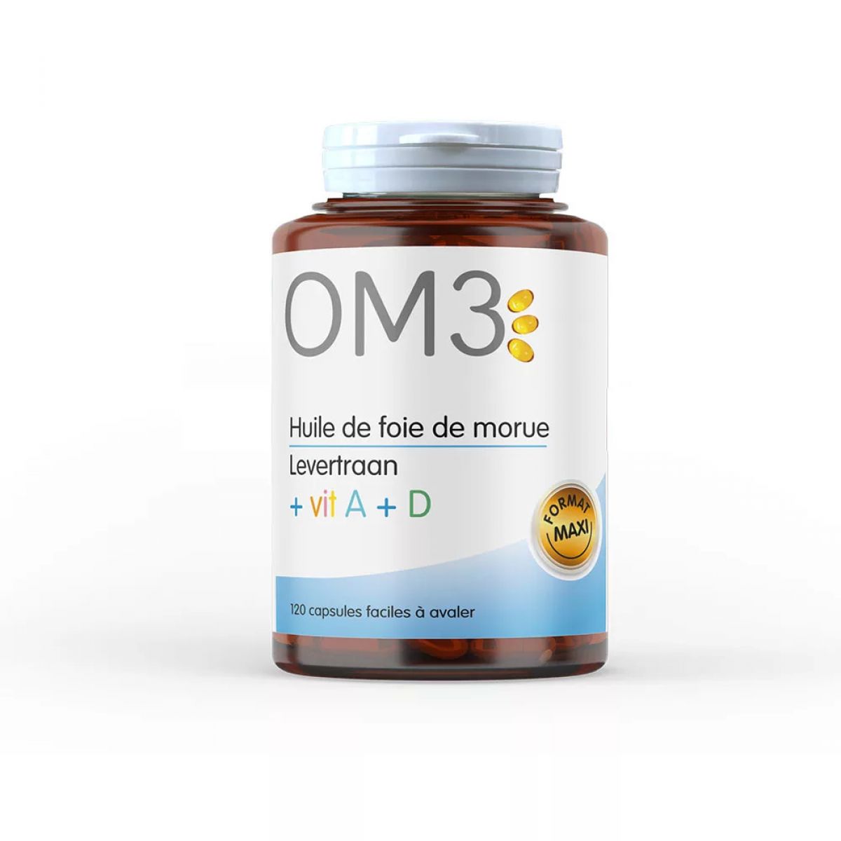 SUPERDIET OM3 Omega3 Tőkehalmájolaj + A + D vitamin lágykapszula (120db)