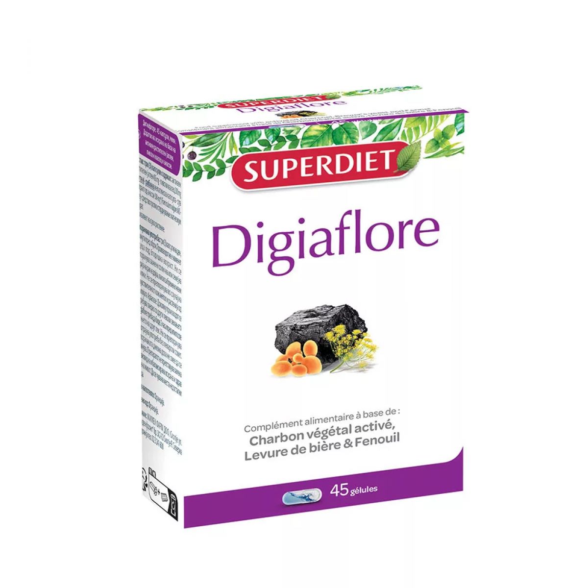A Digiaflore® kifejlesztéséhez a SUPERDIET laboratóriuma kombinálta a növényi aktív szenet, a sörélesztőt és az édesköményt.